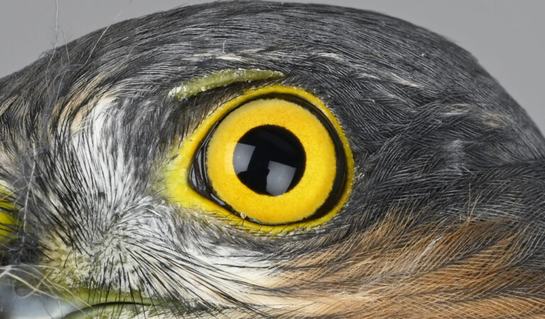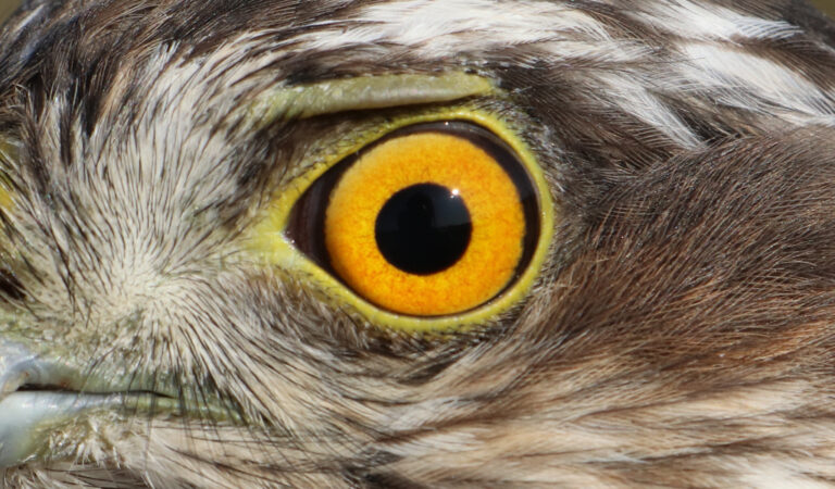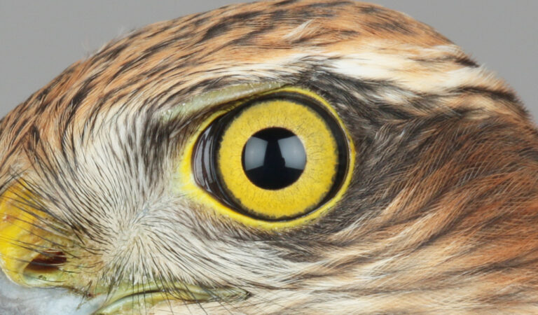 2cy female, September. Females are slower than males to develop colour in the iris and may never develop red like in males. 2cy females tend to have a yellow iris like that of juv, sometimes with small traces of orange. [6224977]
